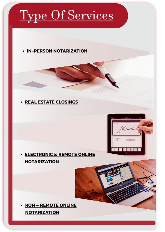 I notarize in hospitals, hospice and senior homes. I notarize General/Durable Power of Attorney, Wills, Health Care Directives, Estate Documents, Deeds and Titles.